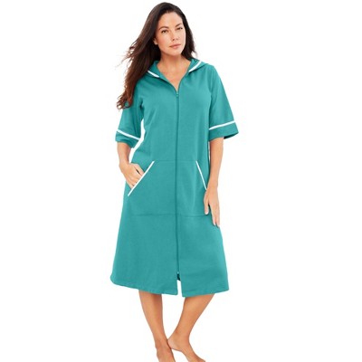 Arus Women's Hooded Turkish Terry Cotton Robe Lightweight Ankle Length Bathrobe with Overlock Stitching