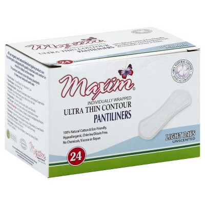 Maxim Ultra Thin Contour Pantyliners, Unscented Light Flow Organic Pads, Size 1 - 24Ct