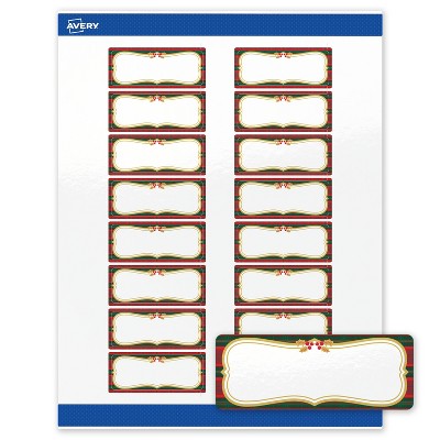Avery Labels, 4" x 3-1/3", Gold-Red-Green Plaid, Matte, 40ct