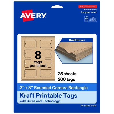 Avery Kraft Brown Rectangle Labels with Sure Feed, 3-1/4" x 8-3/8", 150 Kraft Brown Labels, Laser/Inkjet Printable Labels