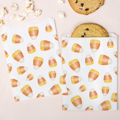 Big Dot of Happiness Candy Corn Paper Treat Bags, Halloween and Fall Individual Candy Snack Favors, Greaseproof White Sandwich Cookie Bags - 25 Count