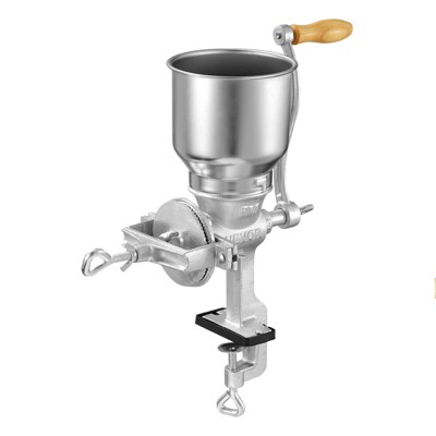 VEVOR Manual Grain Mill with High Hopper, Hand-Crank Corn Grinder, Heavy Duty Cast Iron Wheat Grinding Mill with Stable Table Clamp, Silver