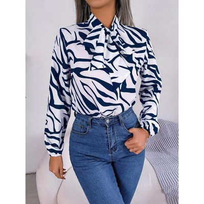 INSPIRE CHIC Women's Peter Pan Collar Tie Neck Puff Sleeve Blouse