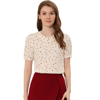 INSPIRE CHIC Women's Peter Pan Collar Puff Short Sleeve Button Cuff Elegant Blouse