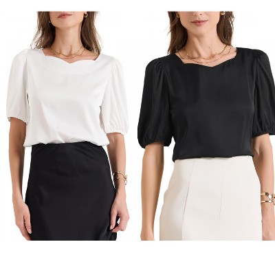 Anna-Kaci Women's Satin Blouse with Buttoned Cuffs and Subtle Puff Shoulders