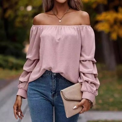 Zeagoo Women's Knit Shirt Soft Puff Long Sleeve Blouse Tops Lightweight V Neck Tunic