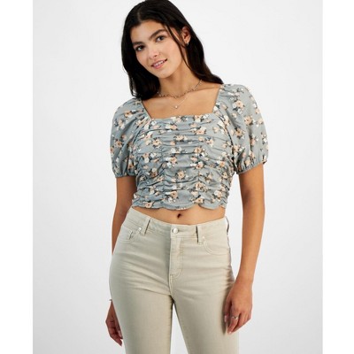 Celebrity Pink Womens Puff-Sleeve Smocked Crop Top Blouse
