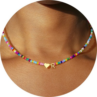 Turandoss Gold Heart Initial Necklace for Kids Women, Beaded Choker Necklaces for Girls, Birthday Gift for Girl 6-18, Valentine's Day Mom Gift for Kid