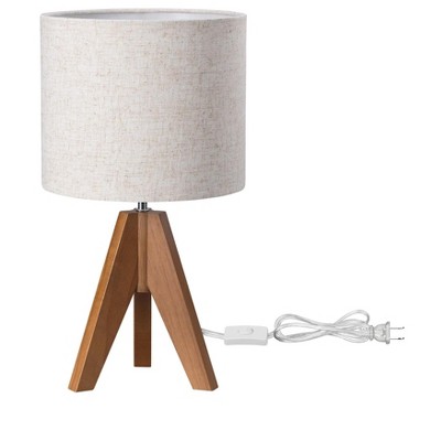 Itopfox Tripod Table Lamp with Linen Beige Shade, Small Bedside Nightstand Lamp for Nursery, Bedroom, Living Room, Light Brown Wooden Base E26 Socket