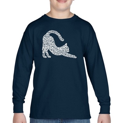 LA Pop Art Stretching Cat - Boy's Word Art Long Sleeve T-Shirt