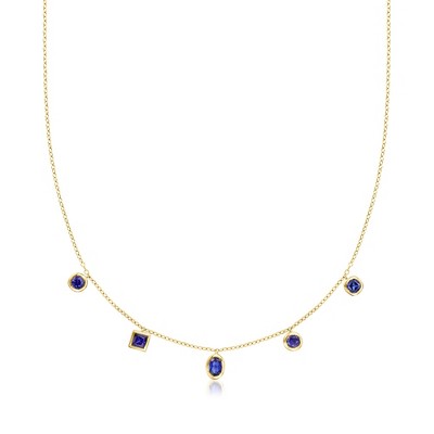 Pure Collection by Ross-Simons 2.00 ct. t.w. Multi-Shaped Lab-Grown Sapphire Necklace in 18kt Gold Over Sterling Size 16