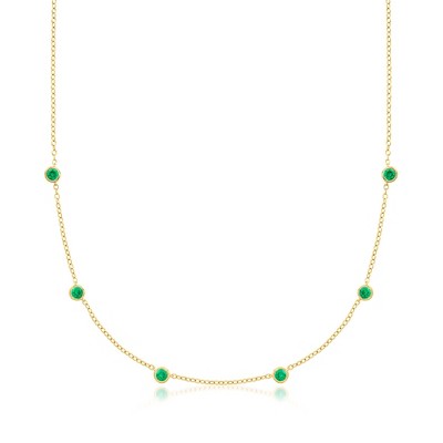Pure Collection by Ross-Simons 0.50 ct. t.w. Bezel-Set Lab-Grown Emerald Station Necklace in 18kt Gold Over Sterling Size 16
