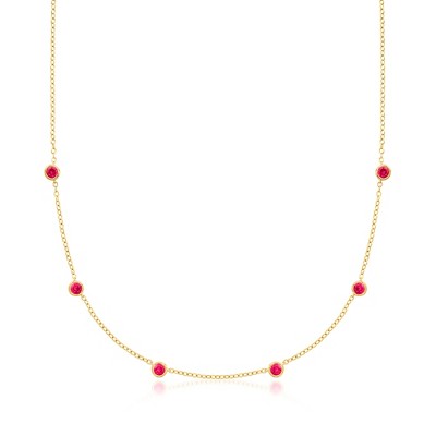 Pure Collection by Ross-Simons 0.80 ct. t.w. Bezel-Set Lab-Grown Ruby Station Necklace in 18kt Gold Over Sterling Size 16