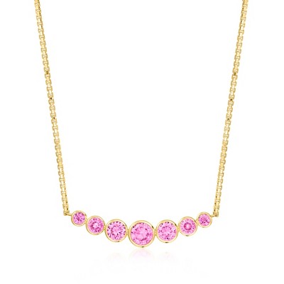 Pure Collection by Ross-Simons 1.60 ct. t.w. Graduated Bezel-Set Lab-Grown Pink Sapphire Curved Bar Necklace in 18kt Gold Vermeil Size 16