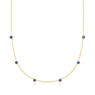 Pure Collection by Ross-Simons 0.80 ct. t.w. Bezel-Set Lab-Grown Sapphire Station Necklace in 18kt Gold Over Sterling Size 16