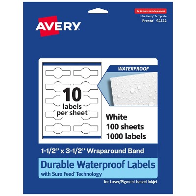 Avery 1-1/2" x 3-1/2" Waterproof Wraparound Labels, 1,000 Labels