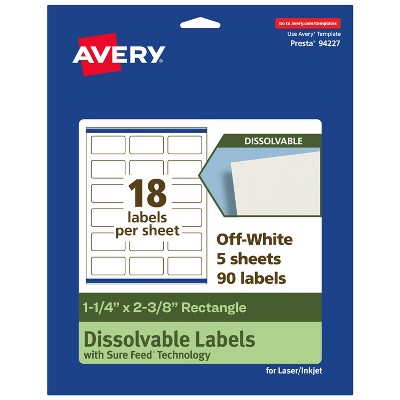 Avery Dissolvable Labels, 1-1/4" x 2-3/8" Rectangle