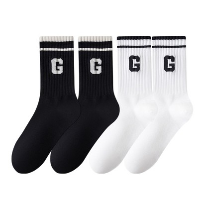 Anna-Kaci Women's 4-Pair Pack Ribbed Cotton Crew Socks with Striped Cuffs and G Letter Detail in Neutral Athletic Color Combinations