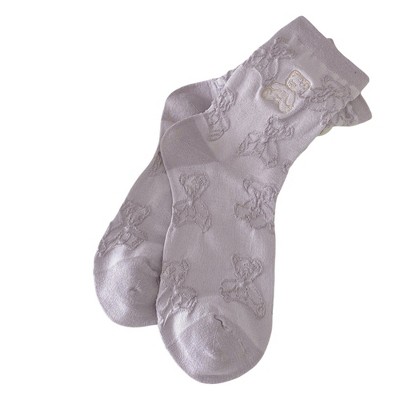 Memoi Women's Foot Pet Teddy Bear Crew Socks Oatmeal One Size