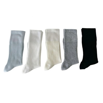 Anna-Kaci Women's Ribbed Knit Crew Socks 5 Pair Set Soft Stretch Mid Calf Everyday Comfort Socks - Multicolors