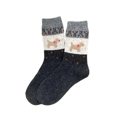 Anna-Kaci Women's 3-Pair Ribbed Knit Crew Socks with Dog Motif and Nordic Pattern - Black