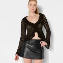 Womens Top Fitted Square Neck Lace Trim Long Sleeve Casual Knit Top