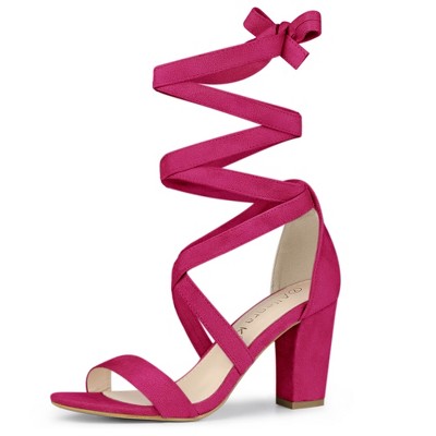 Allegra K Women's Back to College Open Toe Lace Up Chunky High Heels Strappy Sandals