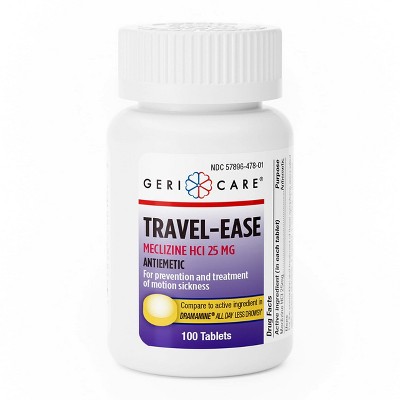 GeriCare Meclizine HCl 25 mg Travel Ease Tablets for Motion Sickness Relief and Nausea Prevention 100 Count