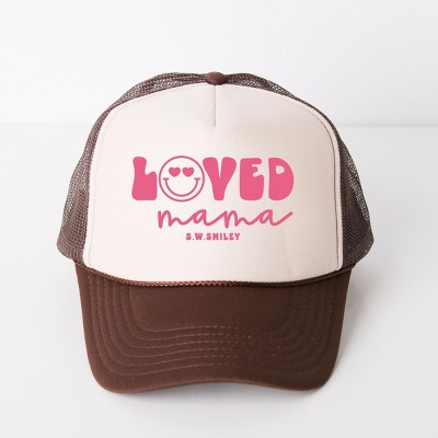 Simply Sage Market Loved Mama Smiley Face Foam Trucker Hat - Adult - Brown Tan