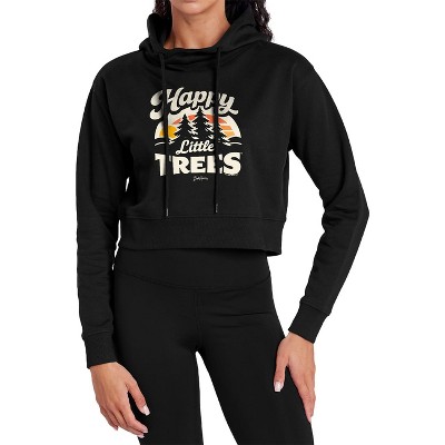 Women's Bob Ross Happy Little Trees Cropped Hoodie Pullover Sweatshirt