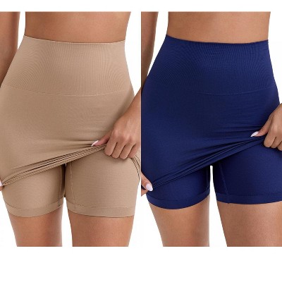 INSPIRE CHIC Women's Leggings Butt-Lifting Tummy Control High-Waisted Above Knee Tight Half Slip 2 Packs