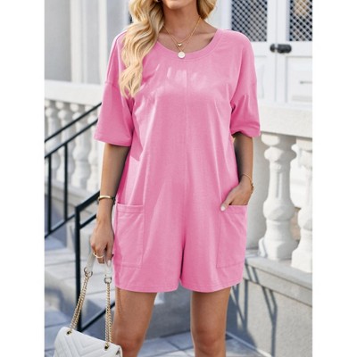 Coolmee Womens Summer Rompers Casual Athletic Oversized Romper Short Sleeve Jumpsuit with Pockets