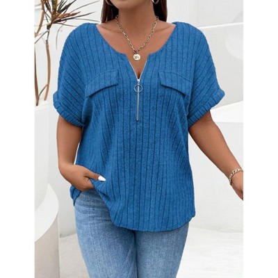 Clearlove Plus Size Top for Women Short Sleeve Blouses Zip-up V Neck Top Womens Fashion 2026 Trendy Casual Work Shirt