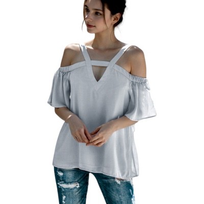 Anna-Kaci Women's Solid Cutout Cold Shoulder Top
