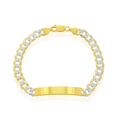 Bella Silver Sterling Silver 7mm Pave Curb Chain ID Bracelet - Gold Plated - Gold - 8.5 Inch