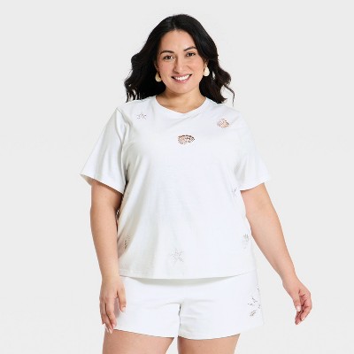 Women's Short Sleeve Round Neck Crochet T-Shirt - A New Day™ White