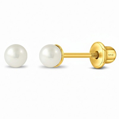 Girls' Classic Freshwater Cultured Pearl Screw Back Gold Plated Sterling Silver Earrings - In Season Jewelry