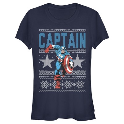 Juniors Womens Marvel Ugly Christmas Captain America Star T-Shirt