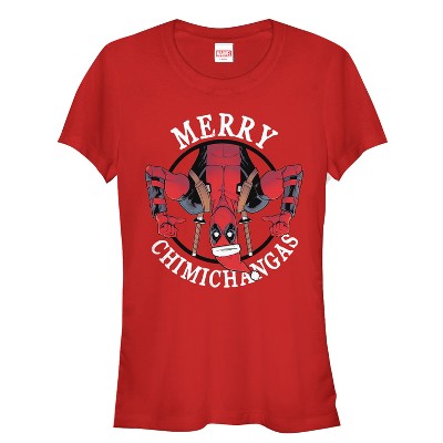 Juniors Womens Marvel Christmas Deadpool Merry Chimichangas T-Shirt