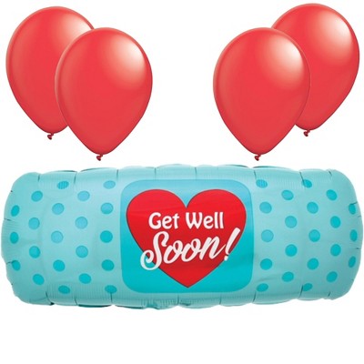 LoonBalloon 29 Inch Get Well Band-Aid Balloon with 4 Latex Balloons – Fun & Uplifting Get Well Soon Balloon Set