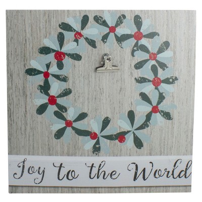 Northlight 10" Christmas Wreath and Joy to the World Canvas Wall Art with Photo Clip