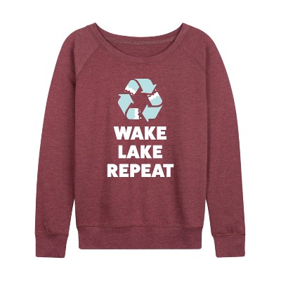 Women's - Instant Message - Wake Lake Repeat Lightweight French Terry Wide Neck Long Sleeve Graphic Shirt