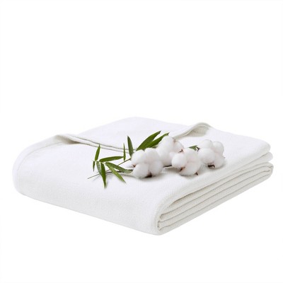ChicFurnit Throw Blankets - Twin Size Bamboo Rayon Blend Blanket, Diamond Jacquard Weave, Breathable Year-Round Comfort, White, 66"*90"*0.25"