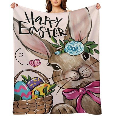 Cute Rabbit Bunny Blanket Easter Egg Throw Blankets for Sofa Couch Happy Easter Gifts for Kids Women Adults 60x80 inches