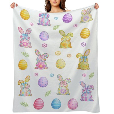 Easter Throw Blanket Gifts - Bunny Throw Blanket Easter Eggs Rabbit Brithday Gifts for Spring Holiday Soft Flannel Blanks 40x50 inches