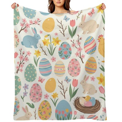 Throw Blanket Super Soft Cozy and Plush for Couch and Chair Easter Blankets and Throws Bunny Eggs Floral Blanket 30x40 inches