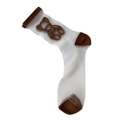 Anna-Kaci Women's 3-Pair Sheer Ankle Socks with Embroidered Bear Detail Lightweight Mesh Sock Set - Brown