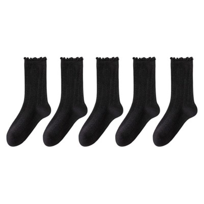 Anna-Kaci Women's Soft Knit Crew Socks 5 Pair Set with Textured Puppy Design and Ribbed Comfort Fit - Multicolors