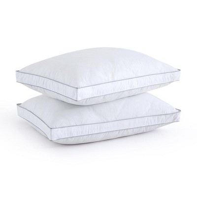Peace Nest Set of 2 Feather Down Gusseted Bed Pillows with 100% Cotton Quilted Shell, Made in USA