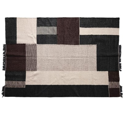 Storied Home Wool and Cotton Rug with Geometric Design and Fringe